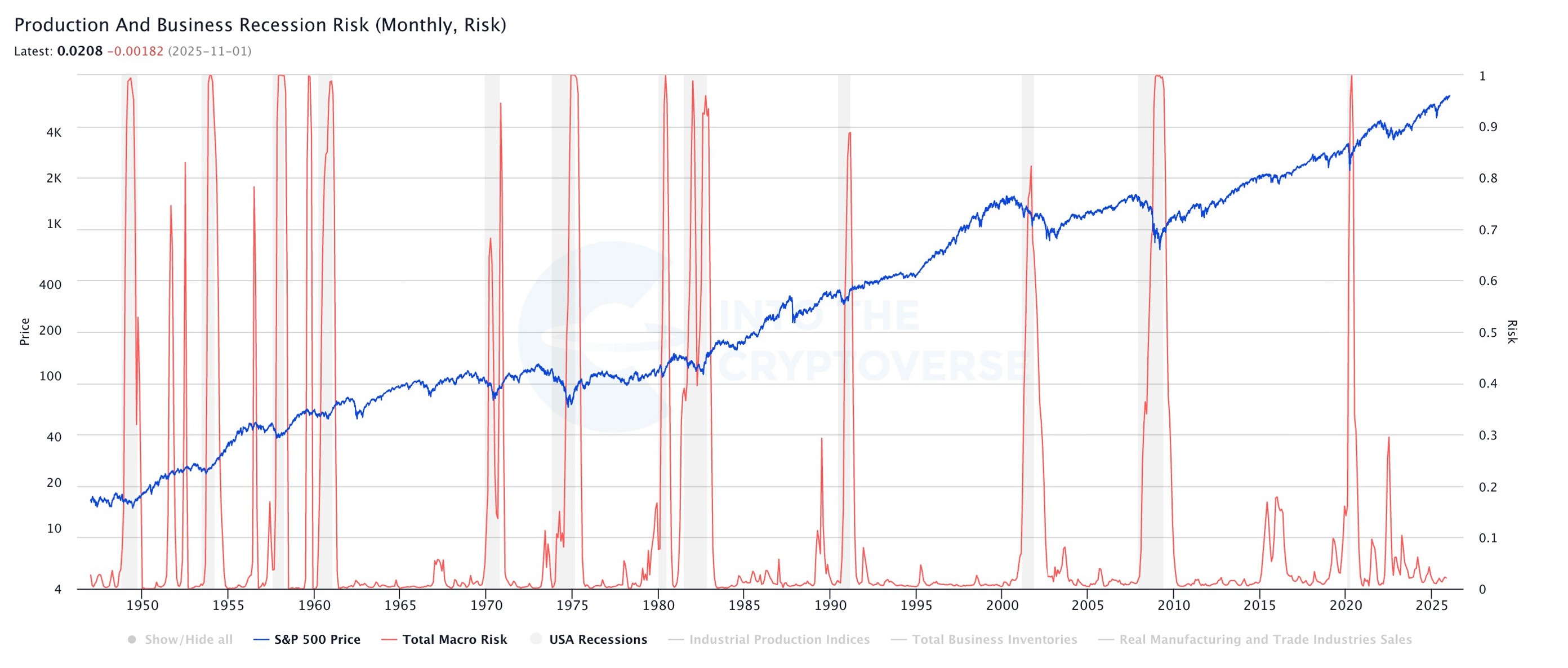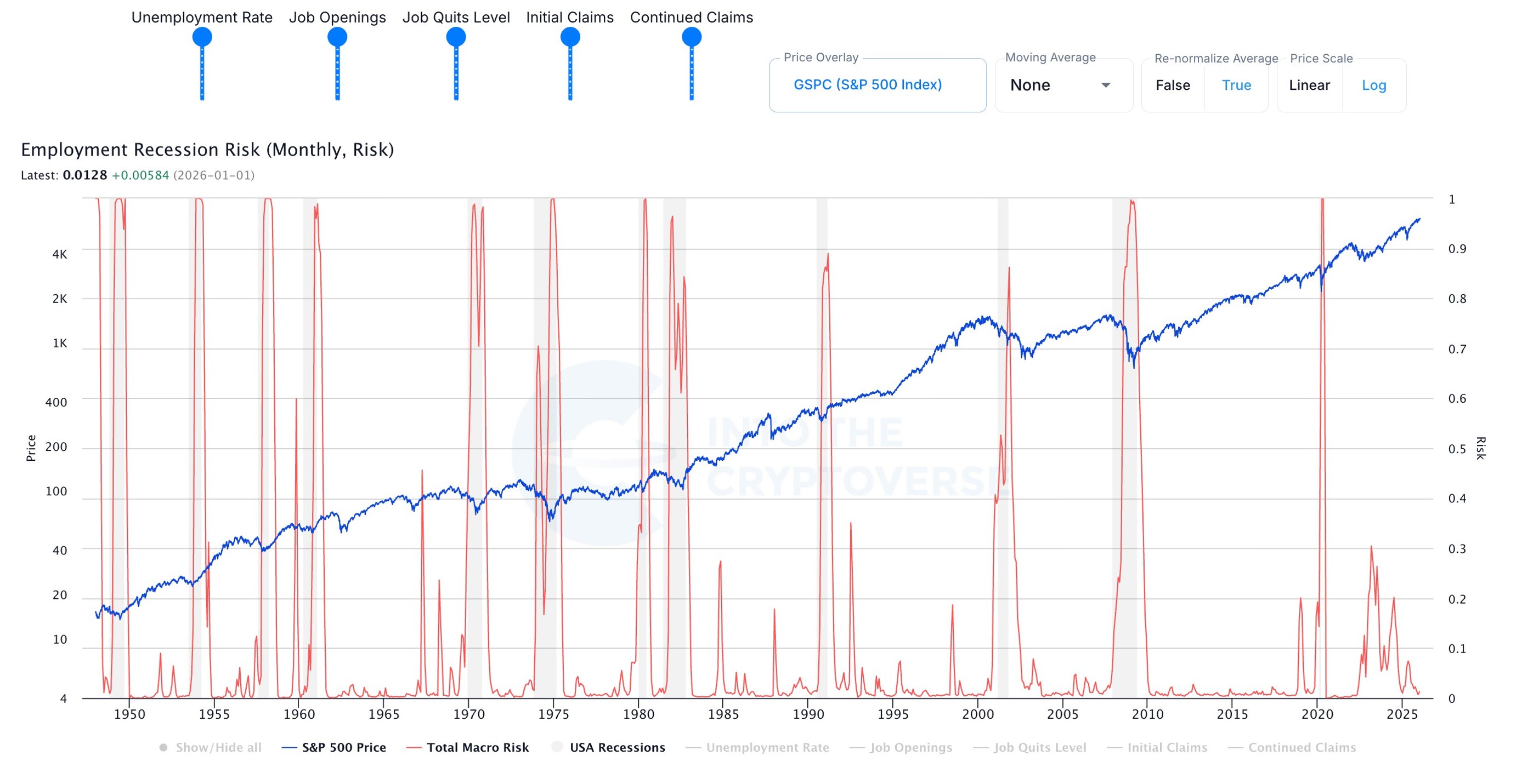 Until recession risk enters a nonlinear phase, marked by rising layoffs, collapsing income growth, or financial instability—the probability of the kind of liquidity expansion that historically drives crypto bull markets remains limited. As a result, macro conditions continue to act as a ceiling on upside rather than a catalyst for a new cycle.