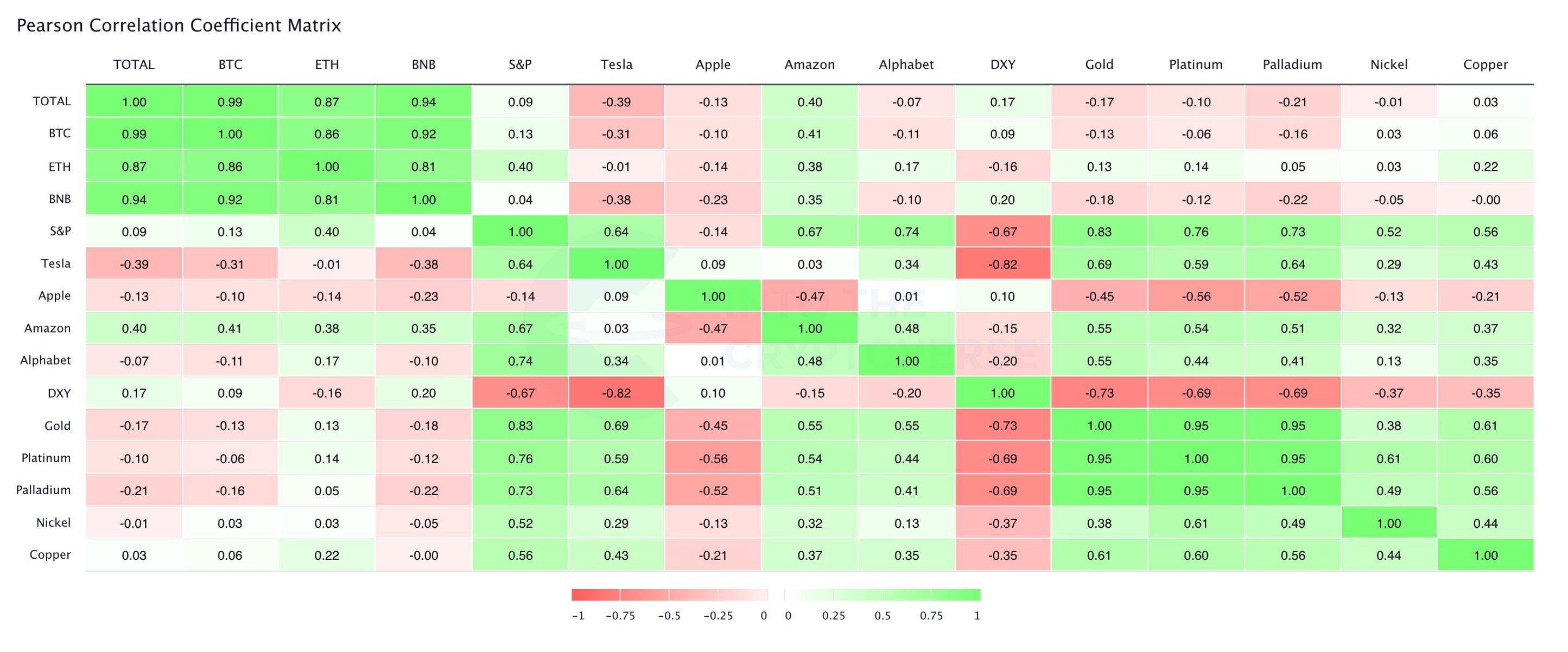 Cross-asset correlations provide important insight into what type of capital is flowing through markets. When crypto is in a bull regime, it typically becomes tightly correlated with other risk assets as global liquidity expands and speculative capital moves indiscriminately across asset classes. When correlations break down, it usually signals segmentation of capital rather than broad risk-on behavior.