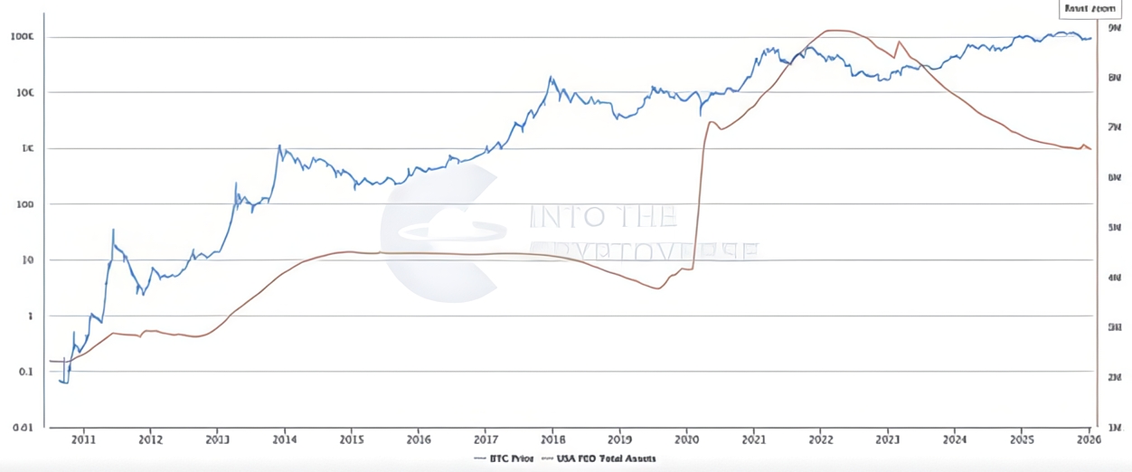 Finally, a decisive shift in macro liquidity would be required. Crypto bull markets have historically emerged not simply when tightening ends, but when liquidity begins to expand in response to economic or financial stress. A collapse in real yields, balance-sheet expansion, or emergency- style policy easing would materially alter the risk–reward profile for digital assets.