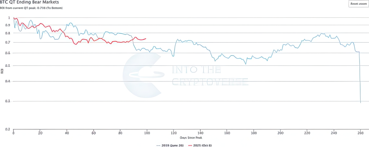 Bitcoin peaked in early October 2025. Quantitative tightening ended in early December 2025. This sequence closely mirrors 2019, when Bitcoin peaked in late June and tightening ended on August 1st.